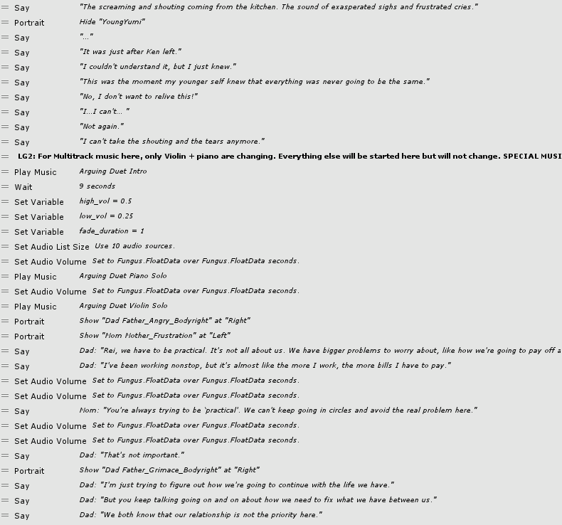Implemented various content (sprites, background art, music tracks, sound effects) into the Unity narrative plugin: Fungus